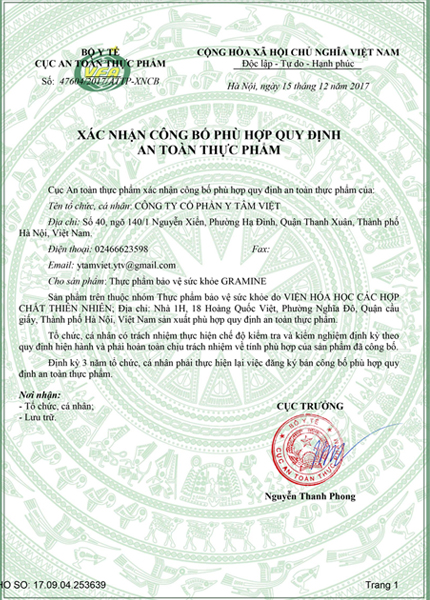 Chú ý: Thực phẩm này không phải là thuốc, không thay thế thuốc chữa bệnh.